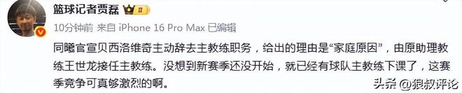 南京官宣换帅引热议!媒体:王世龙加入同曦起贝帅的命运就已注定