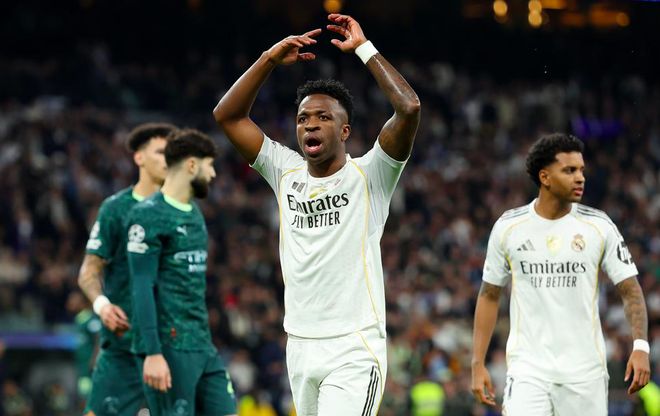 下半场比赛,两队都没有进球。最终,总身价14亿欧元的皇马主场1-2被曼城逆转,联赛+欧冠2连败,总身价12.1亿的曼城取得联赛+欧冠的4连胜。 【精彩瞬间】 第2分钟,维尼修斯被努内斯踢倒,摔倒在了禁区内,裁判第一时间判罚点球。VAR介入,犯规地点在禁区外,裁判改判任意球。