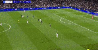 80' 多纳鲁马出击失误,维尼修斯高难度凌空侧勾打飞。