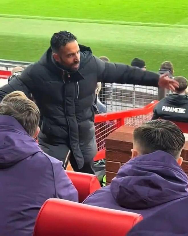 数据显示,这是阿莫林自执教曼联以来在英超联赛中使用的第23条不同的后防线。但后卫经常反应迟缓,导致卡塞米罗和B费在中场出现了巨大的空当。红魔主帅尤其对法国中卫约罗的防守很不满意。 段视频拍摄到阿莫林爬上老特拉福德教练席的楼梯,摊开双臂向助教抱怨约罗的画面。他用葡萄牙语怒斥:「球已经滚动半小时了,莱尼(约罗)在干嘛?」 没有标识可以确定这段视频拍摄于比赛中的哪一阶段,但很可能是曼联2-2被对方扳平之际,当时约罗站位错误,对方反越位破门。约罗最终在70分钟之前被替换下场,利桑德罗·马丁内斯登场。当时曼联以2-3落后,阿莫林甚至将阵型换成了442,下半场的一些时候还打起了424! 在约罗被换下之前,曼联后腰卡塞米罗率先被阿莫林替换掉,33岁的巴西国脚非常生气,以至于把外套都穿反了。「胖虎」上半场补时阶段头球破门,为红魔再次取得领先,可惜下半场他犯规染黄,而且对方把握这次任意球破门,把比分反超为3-2。