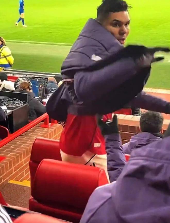 由于积累5张黄牌,卡塞米罗将无缘曼联的下一场比赛,他可能觉得自己没需要休息。因此,走下球场时,卡塞米罗垂头丧气,他摇着头,站在替补席上,把一瓶水摔在了地上。在朝右侧的人大声呼喊后,他拿起一件曼联外套穿上,但并没有注意衣服上下颠倒了。 |