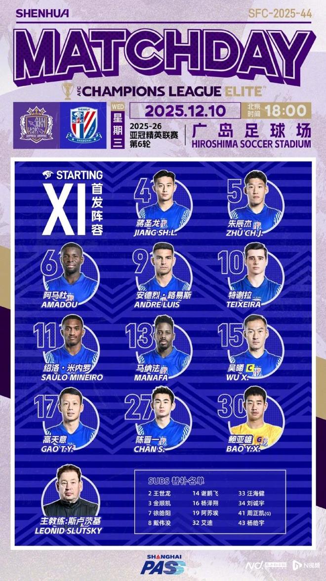 南都讯 记者陶新蕾 亚冠精英联赛第6轮,全主力出战的上海申花客场0比1惜败广岛三箭,苦吞三连败。 这是上海申花2025年的最后一场比赛,在联赛争冠收官阶段饱受伤病困扰的他们终于集齐完整班底。在排兵布阵上,球队全主力出战,路易斯、特谢拉和米内罗的三叉戟领衔五外援首发,伤愈归队的戴伟浚和谢鹏飞替补待命。