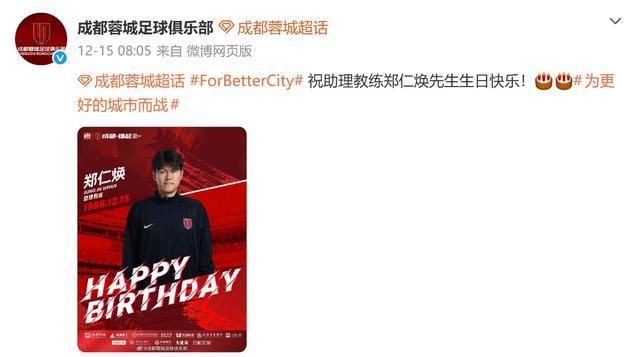 成都蓉城官方公告中写道:为感谢徐正源先生为球队做出的卓越贡献,俱乐部决定授予其成都蓉城足球俱乐部“功勋主教练”称号。 公告中有关徐正源的成绩部分写道:2021年1月起,徐正源先生担任俱乐部一线队主教练,为俱乐部带来了先进的足球理念、严谨的职业态度和永不言弃的拼搏精神。2022年,徐正源先生带领球队成功冲超,成都足球再次登上中国足球顶级职业联赛。从2022年中超第五的惊艳亮相,到2023年勇夺中超第四的强势崛起,再到2024年位居中超第三并历史性闯入足协杯四强,球队一步一个台阶持续攀升。2025赛季,更是登上亚冠精英联赛舞台,让成都足球的风采闪耀于亚洲足坛! 昨天是徐正源的55岁生日,成都蓉城官方并未在社交媒体为主帅送上祝福,而此前在15日,成都蓉城官方曾为助教郑仁焕送上生日祝福。